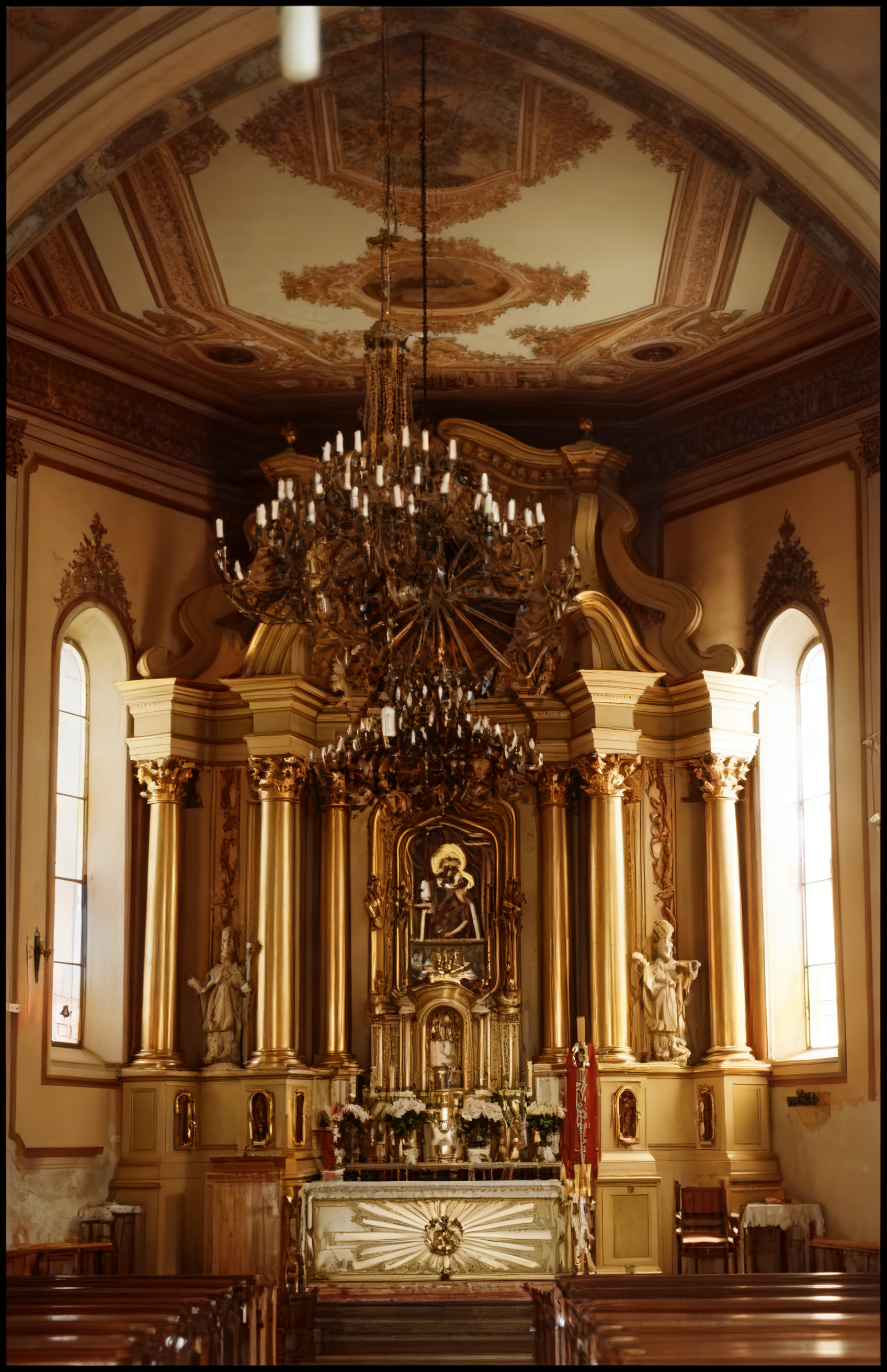 Główny ołtarz w kościele parafialnym pw. Św. Ducha w Łowiczu z obrazem Matki Boskiej Pocieszenia. Fot. 2006 Autor tekstu.